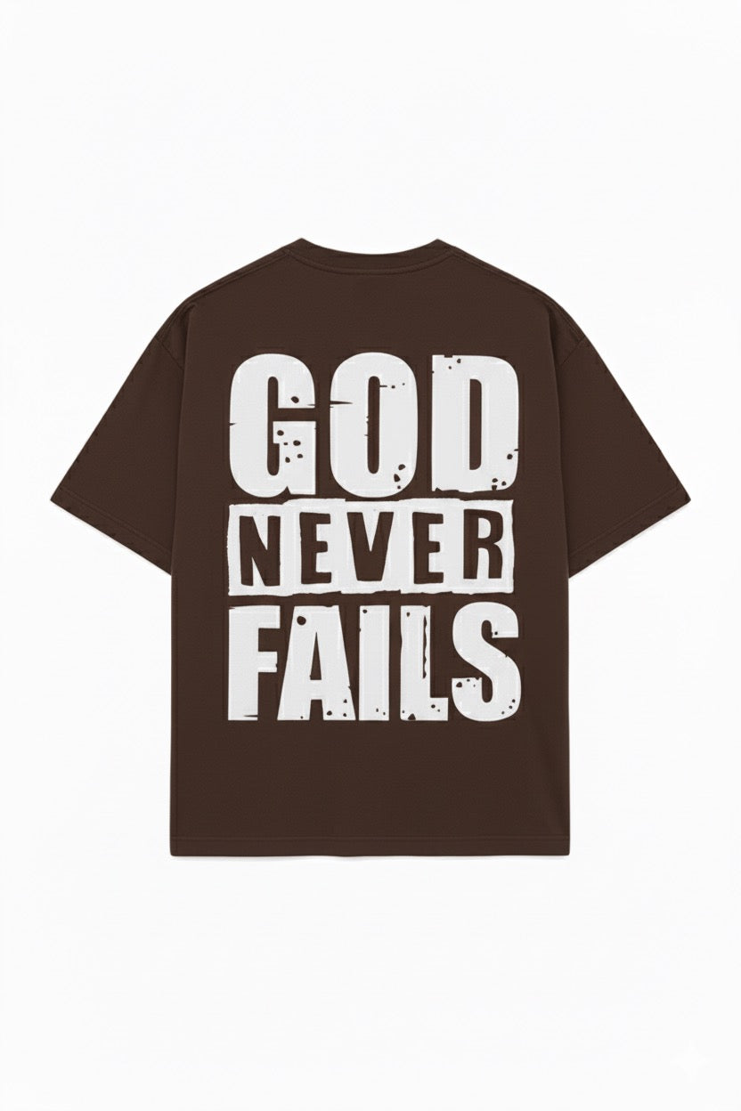 Stand out in faith and comfort with this oversized tee designed to remind you—and everyone around you—of a timeless truth: God never fails.